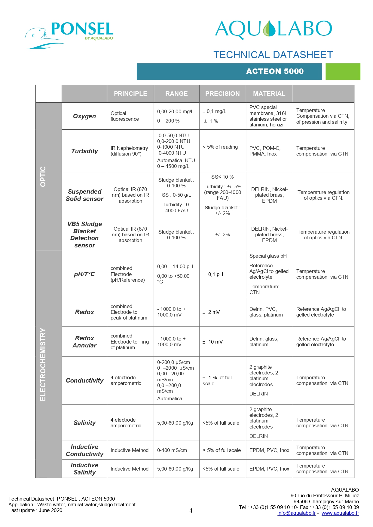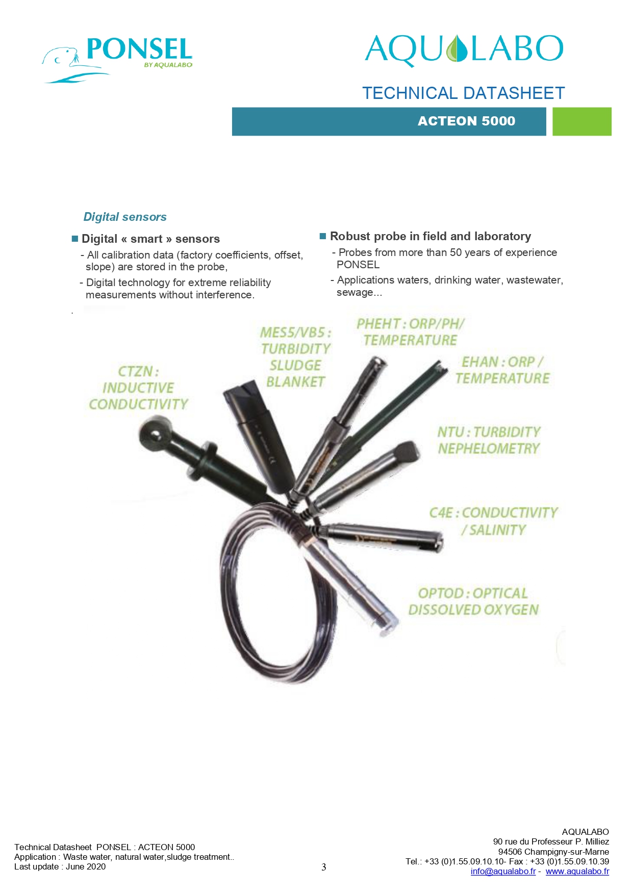 The ACTEON 5000 offers connectivity for two PONSEL MESURE digital sensors simultaneously, ensuring real-time multiparameter monitoring. You can also connect up to two generic analog sensors. These can be freely configured by the user.