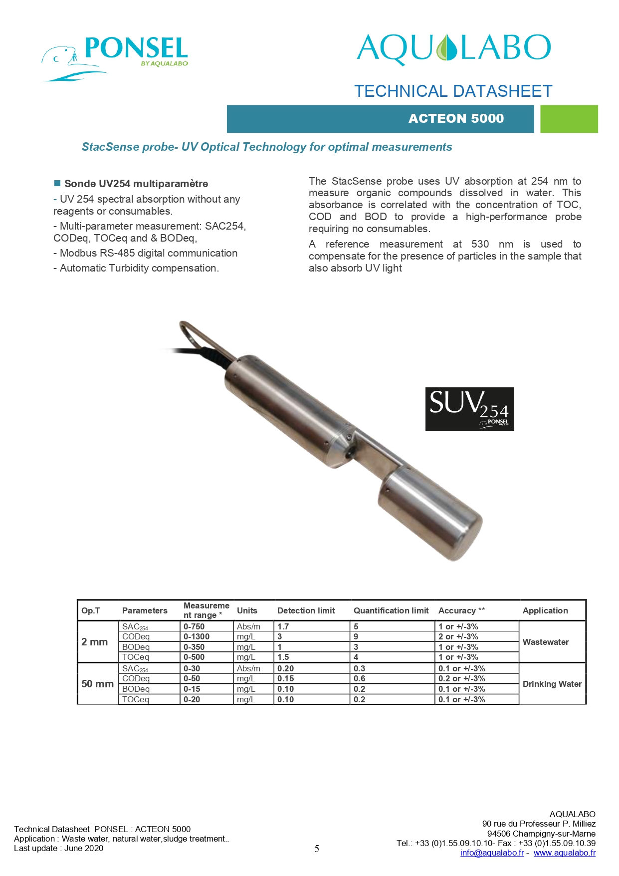 Using digital communication technology, the ACTEON 5000 controller has a wide range of inputs and outputs suitable for process integration. Using Modbus and Ethernet outputs ensures efficient data transmission. With a large color graphic screen that can visualize up to 4 measurements simultaneously, the ACTEON 5000 provides real-time data display. It features intuitive programming, pre-configured rules, and compatibility with our wide range of digital sensors. This makes it a plug-and-play, state-of-the-art controller. From compatibility with technologies such as inductive conductivity to optical fluorescence for dissolved oxygen and UV absorption in the STACSENSE probe, it provides a reliable, all-in-one online water analysis turnkey solution.